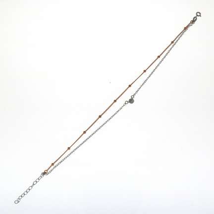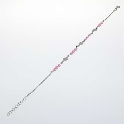 Tobillera de Plata rodiada y rosa con piedra y bolitas
