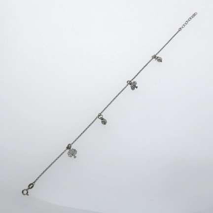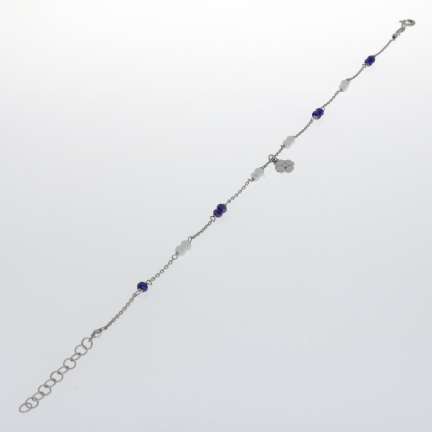 Tobillera de Plata rodiada con trebol y piedras blancas y azules