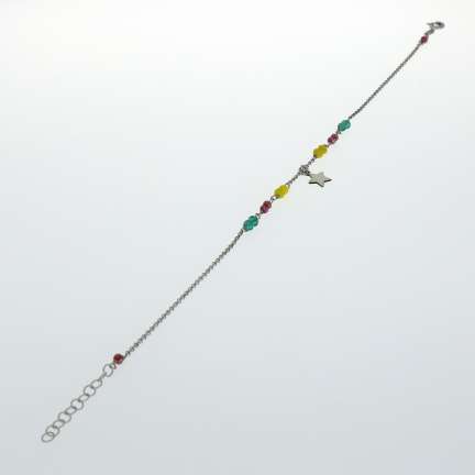 Tobillera de Plata rodiada con estrella y piedras amarillas rojas y verdes