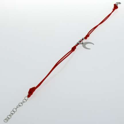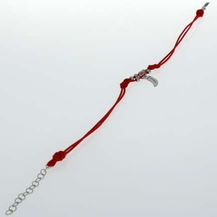 Tobillera de Plata rodiada hilo rojo con colmillo