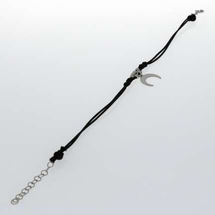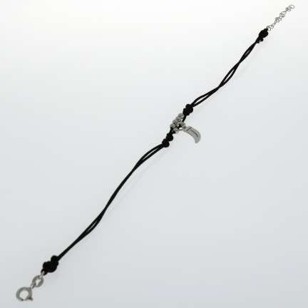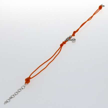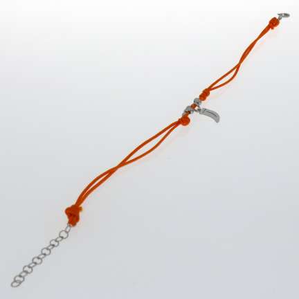 Tobillera de Plata rodiada hilo naranja con colmillo