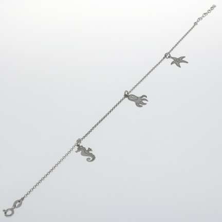 Tobillera de Plata rodiada con pulpo caballito y estrella de mar