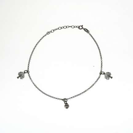 Tobillera de Plata rodiada con dos arbol de la vida y bolita