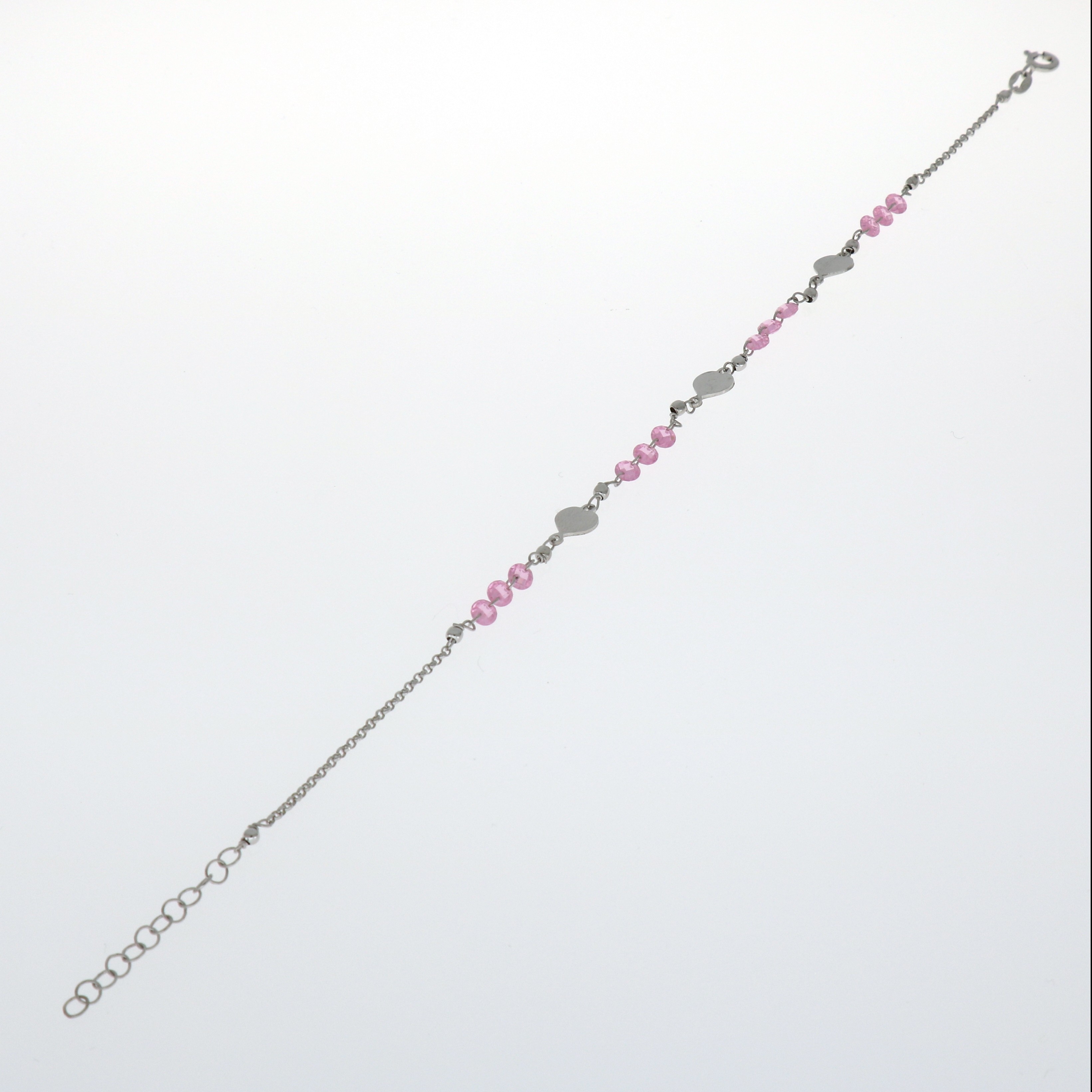 Tobillera de Plata rodiada con tres corazones y piedras rosas