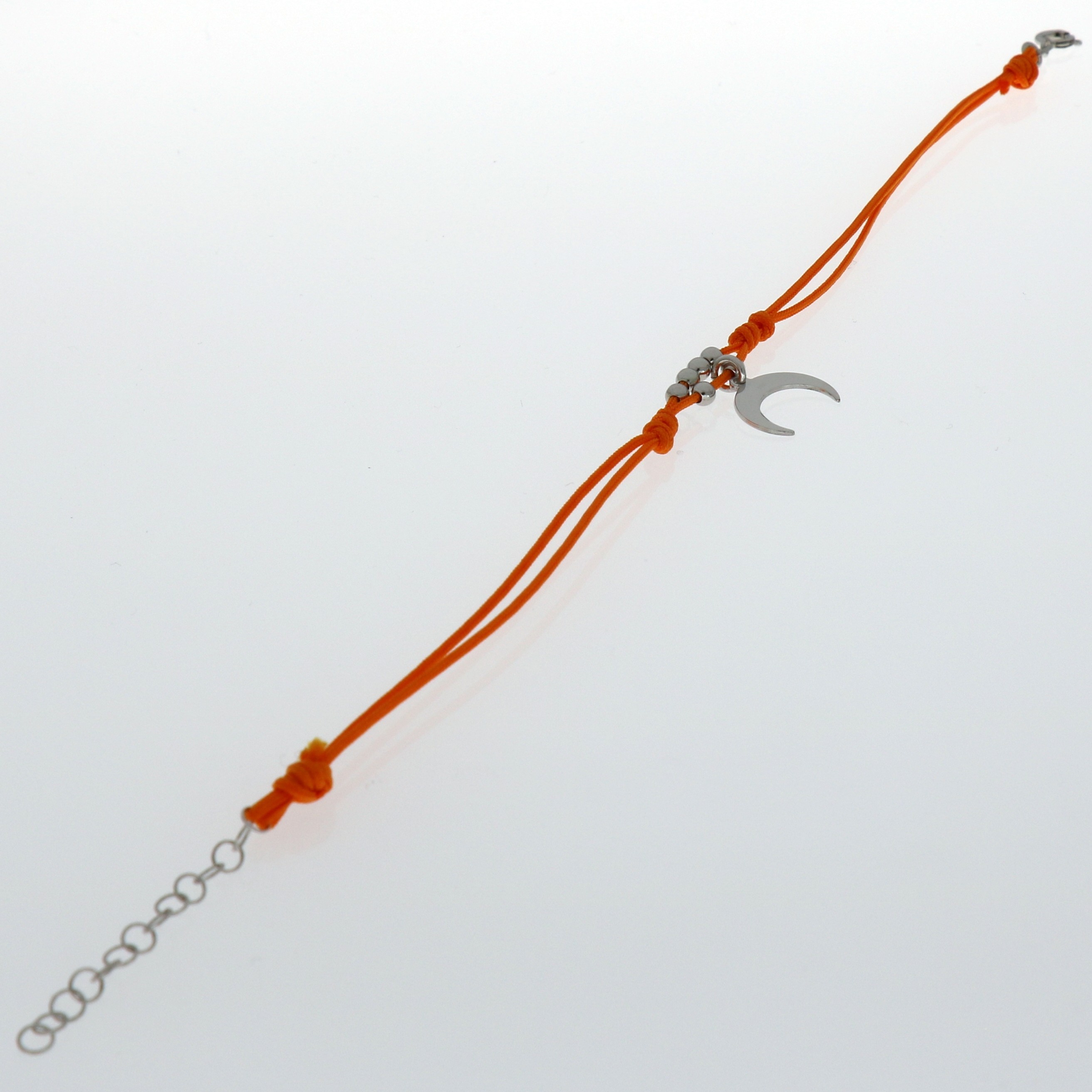 Tobillera de Plata rodiada hilo naranja con luna