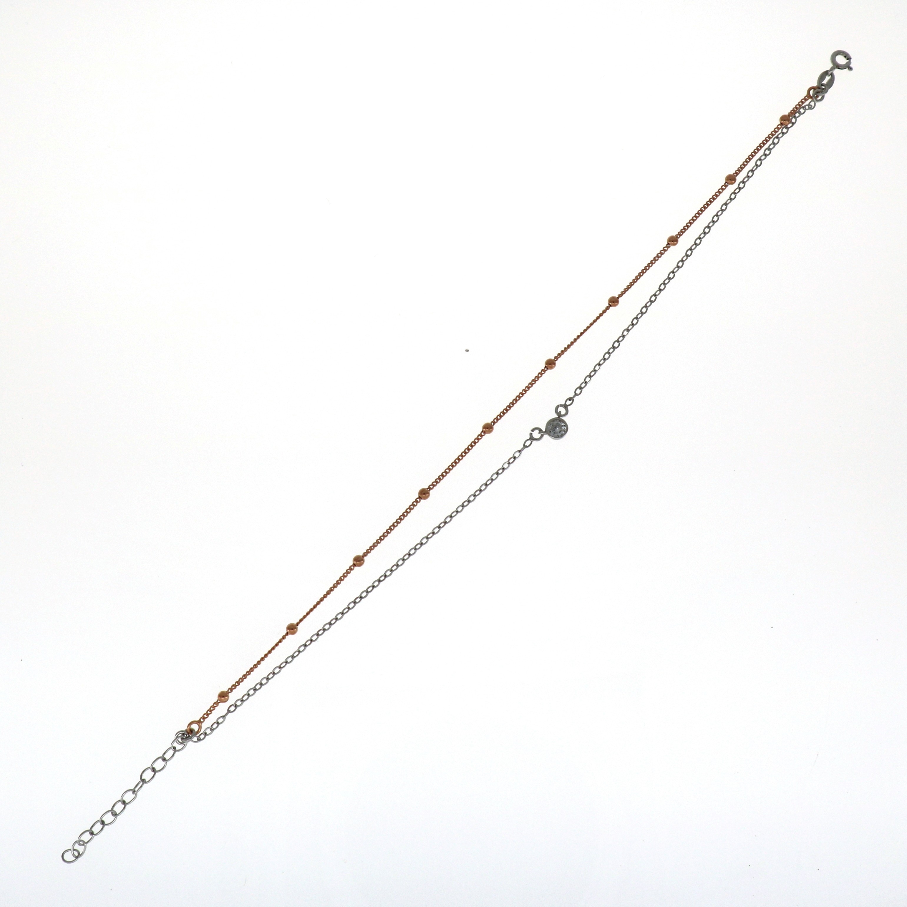 Tobillera de Plata rodiada y rosa con piedra y bolitas
